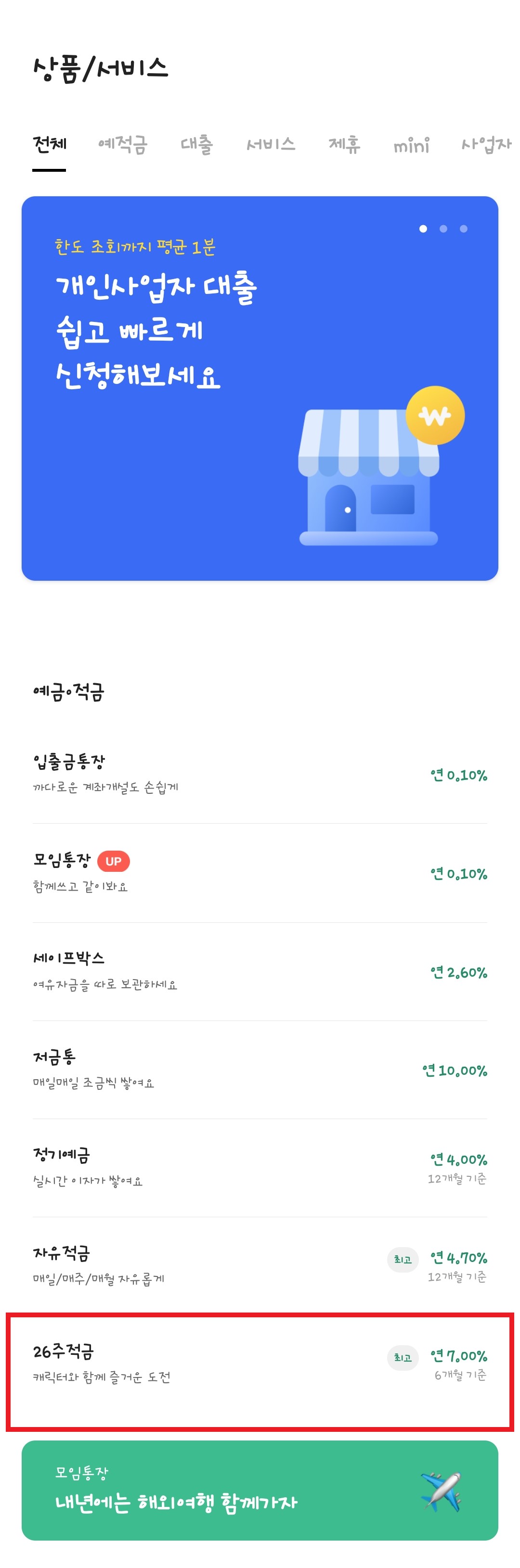 2. 예금. 적금 항목에 있는26주 적금을 선택합니다.