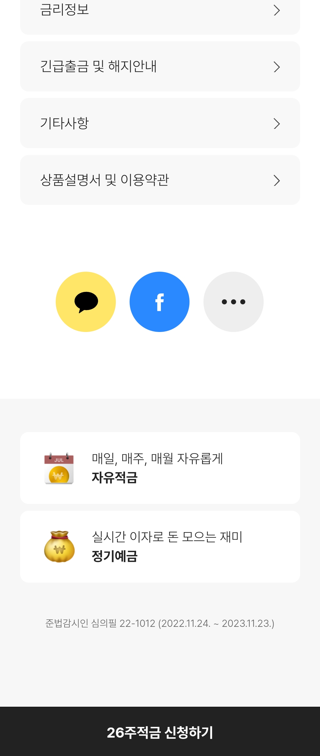 4. 약관내용을 확인하고 준비가 되었다면 26주 적금 신청하기 버튼을 눌러주세요.