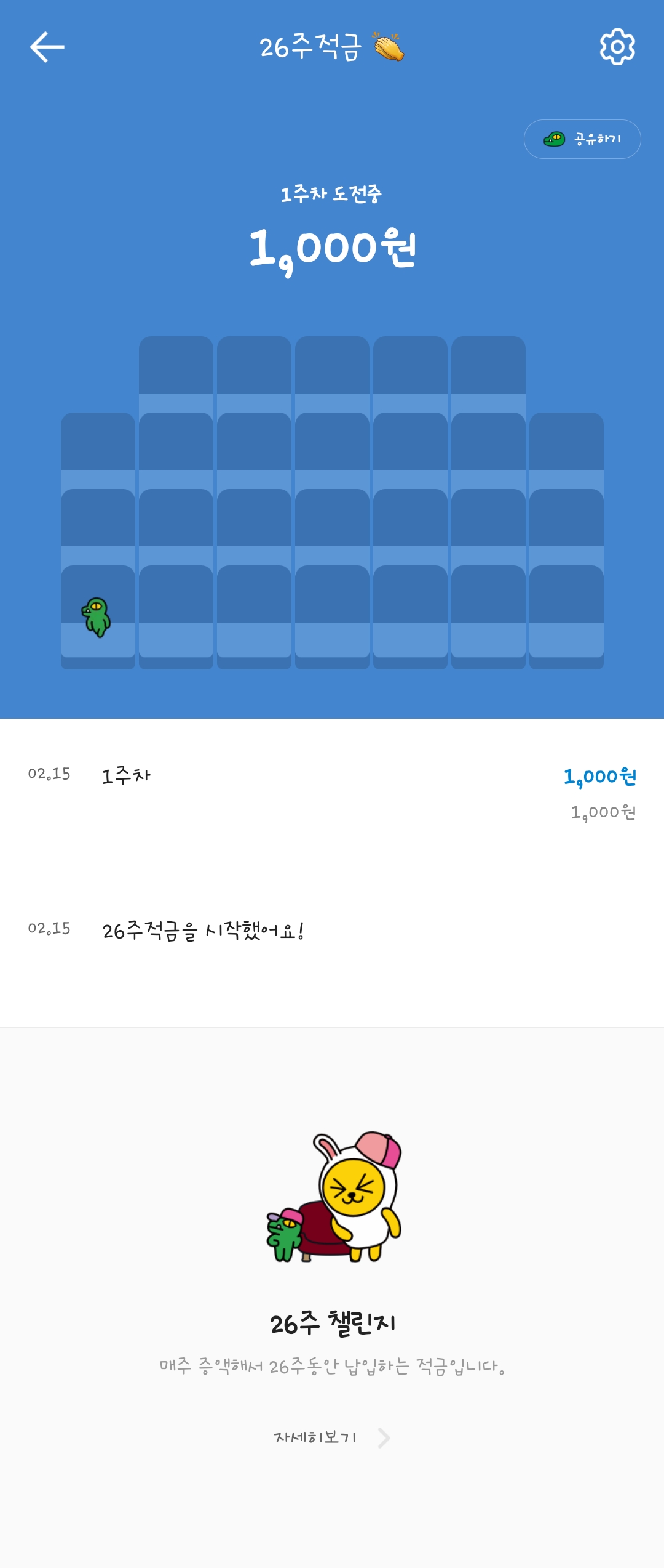 | 카카오 26주 적금 매주 1,000원씩 증액되는 적금 후기 (저축 습관 들이기) (0) | 2023.02.19 |