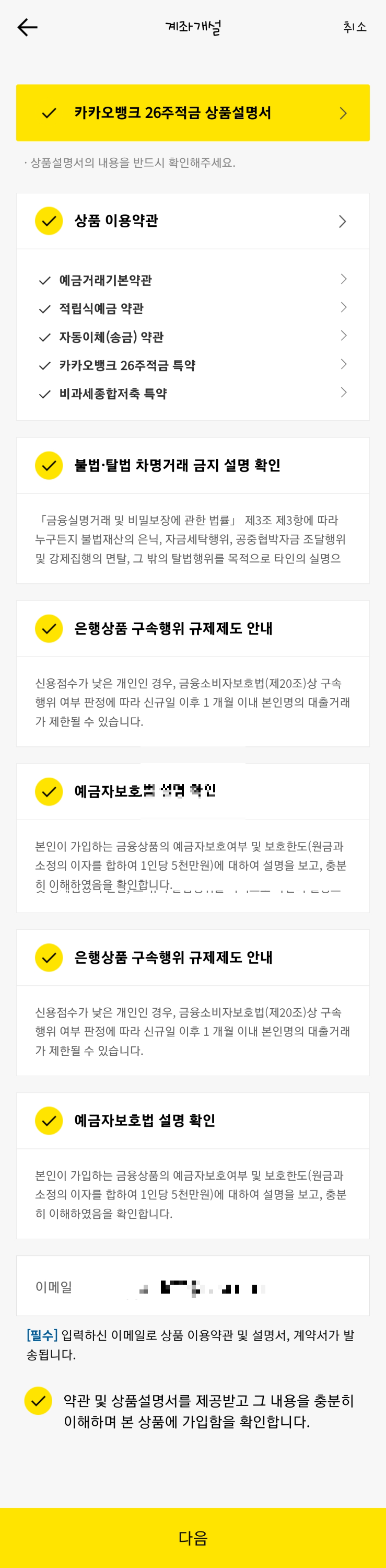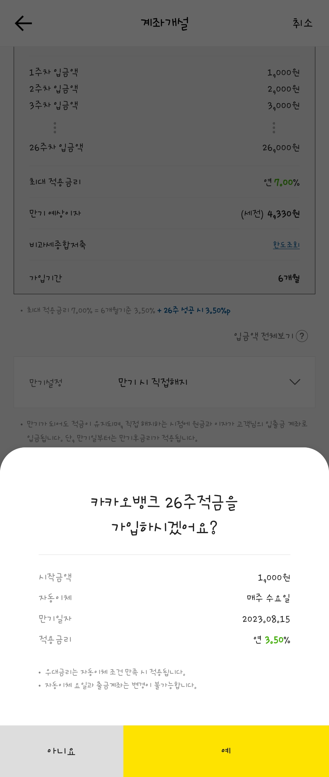 12. 카카오뱅크 26주 적금을 가입하시겠어요? 예