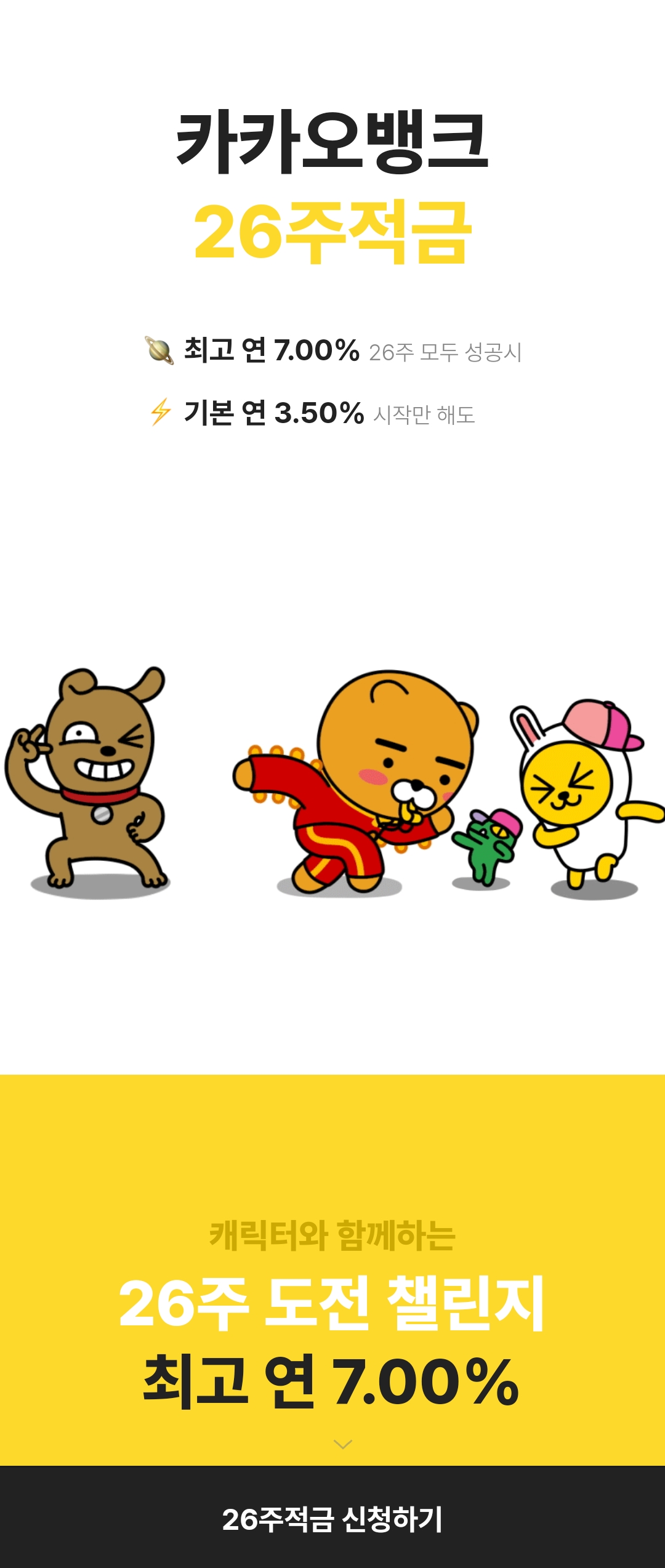 소액으로 시작! 목돈을 모으는 성취감까지! 카카오뱅크 26주 적금 개설해 봐요!