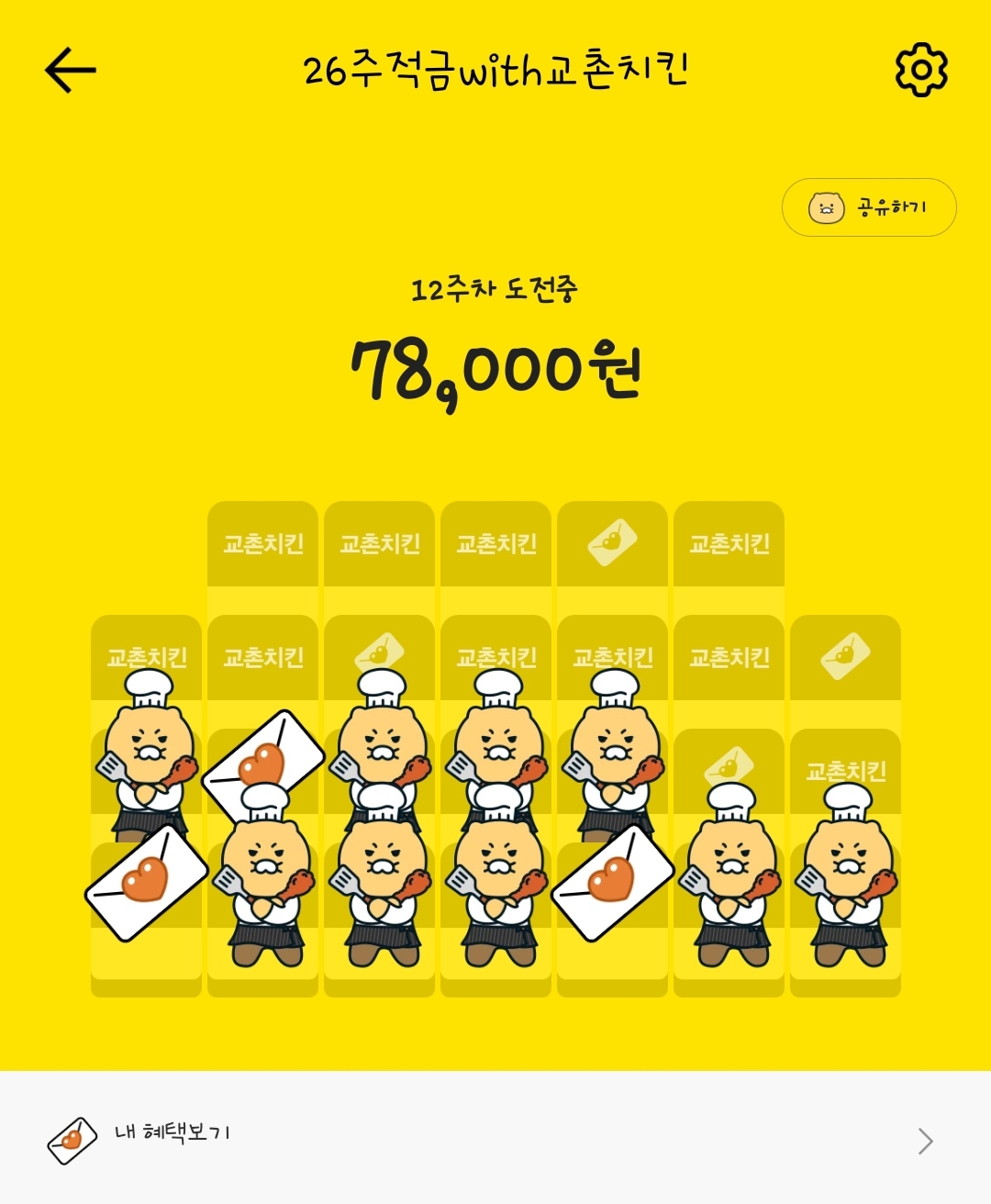 26주 동안 캐릭터와 함께 적금 챌린지를 도전하게 됩니다.매주 적금 자동이체를 성공하게 되면 이체 인증하듯이 내가 선택한 캐릭터도 한 명씩 증가된답니다. 26주 동안 매주 다양한 포즈를 가진 캐릭터가 한명씩 늘어나요~!